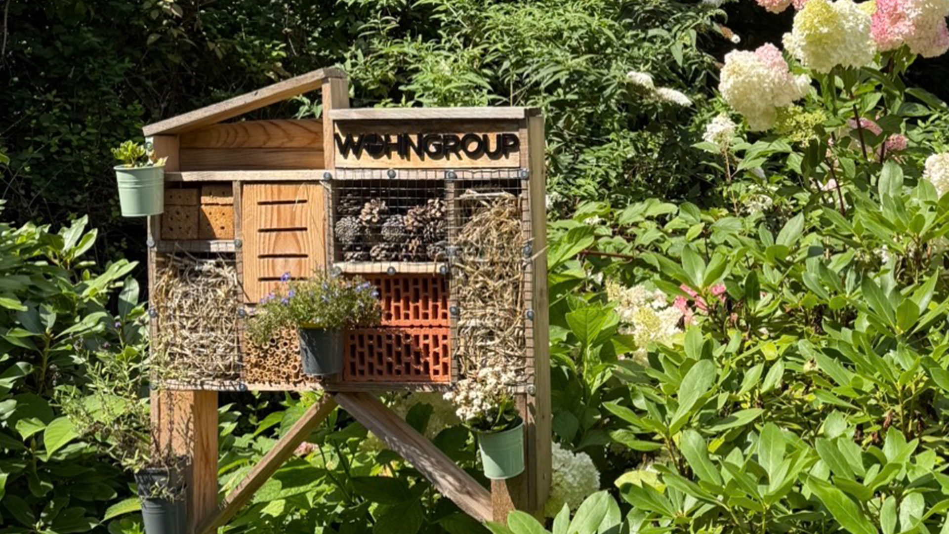 Auch jenseits unserer Bauprojekte engagieren wir uns für mehr ökologische Verantwortung. Mit der internen Bienenstark-Challenge sammeln unsere Mitarbeitenden Punkte für bewusst nachhaltiges verhalten im Arbeitsalltag. Zusätzlich wurde ein großes Insektenhotel von Mitarbeitern gebaut und im Garten unseres Unternehmenssitzes aufgestellt – ein sichtbares Zeichen für praktischen Naturschutz.