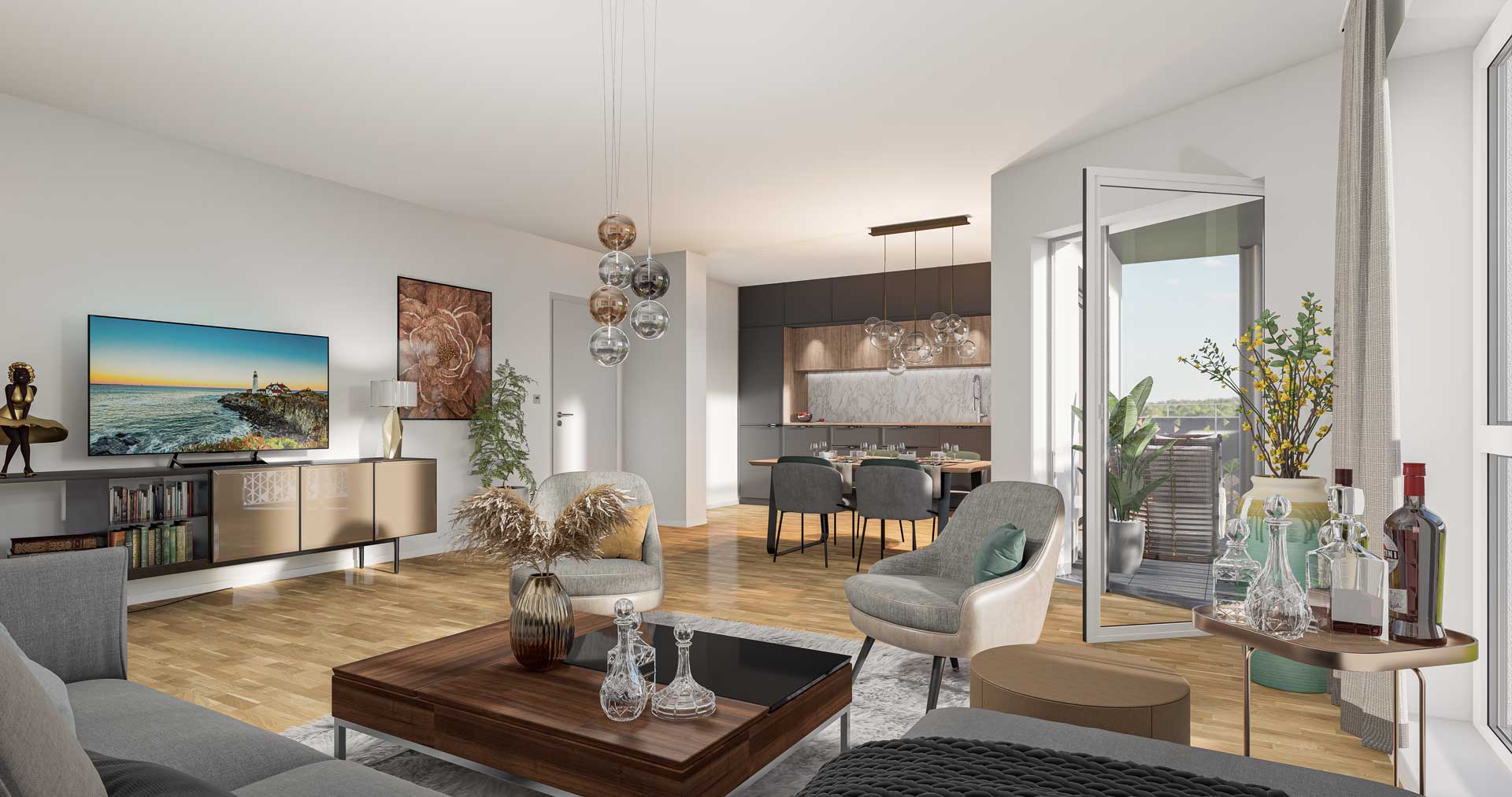 Die Bauabschnitte A-E sind bereits fertiggestellt und bezogen. Mit den Bauabschnitten F-J erwarten Sie weitere echte Hingucker. Als Ergebnis eines Architekturwettbewerbes machen die Gebäude optisch durch Ihre klare Linienführung und die moderne Architektur auf sich aufmerksam. Die Qualität des neuen Quartiers liegt in den ruhigen, urban und hochwertig gestalteten Innenhöfen. Diese schaffen attraktive Angebote zeitgemäßen Lebens für jede Altersgruppe – mitten im Quartier.