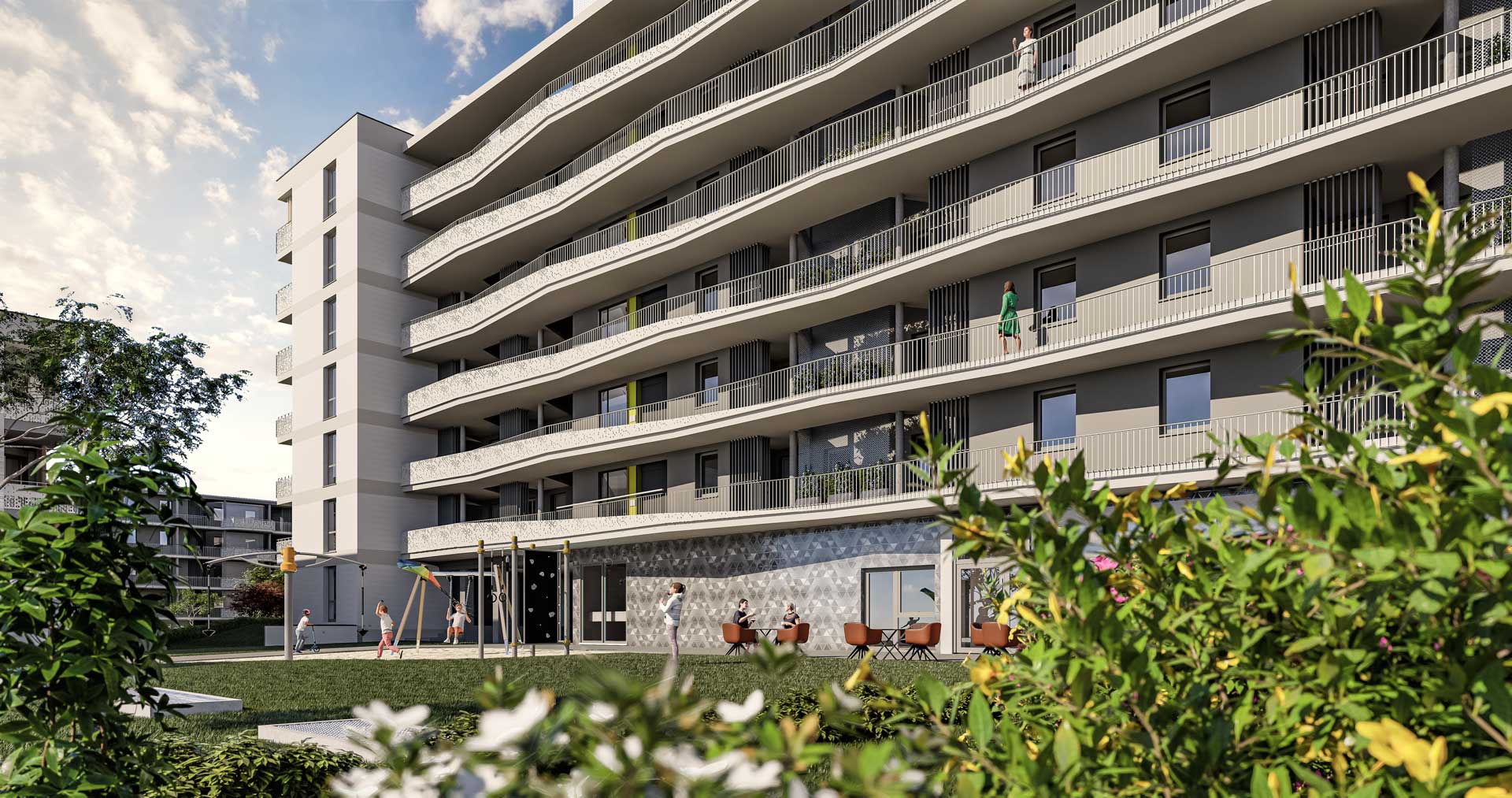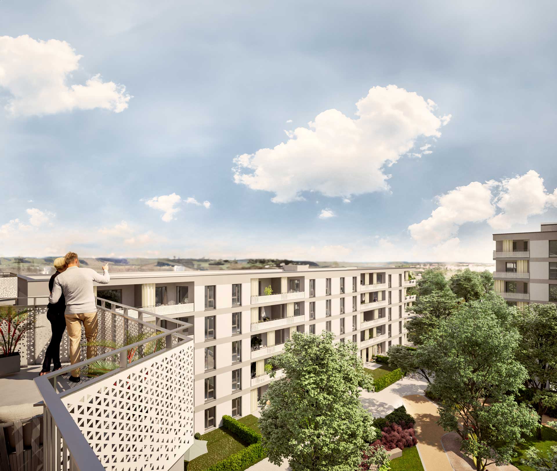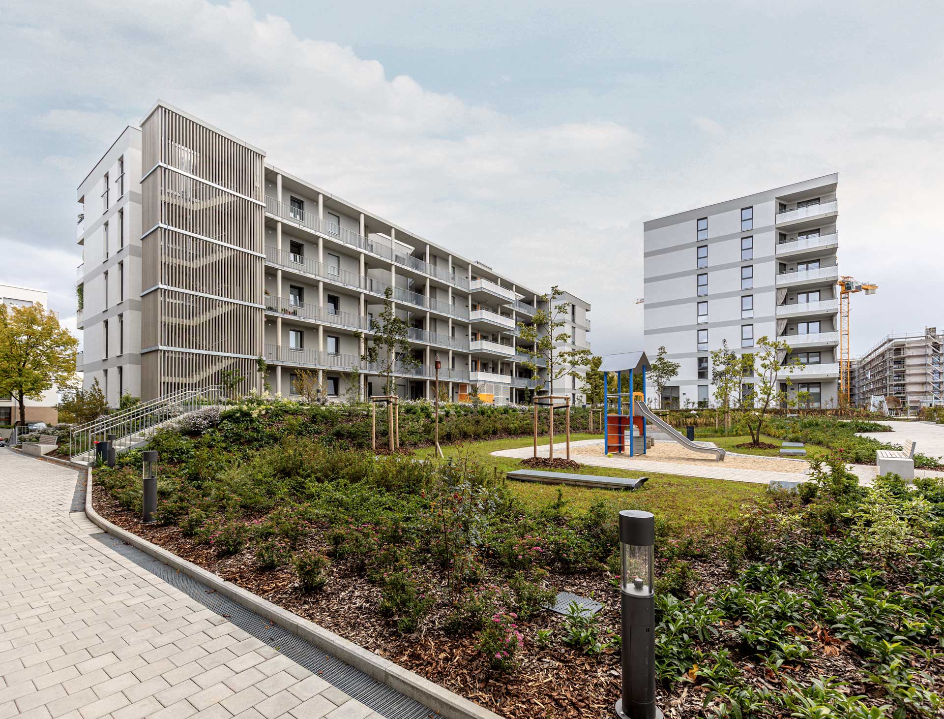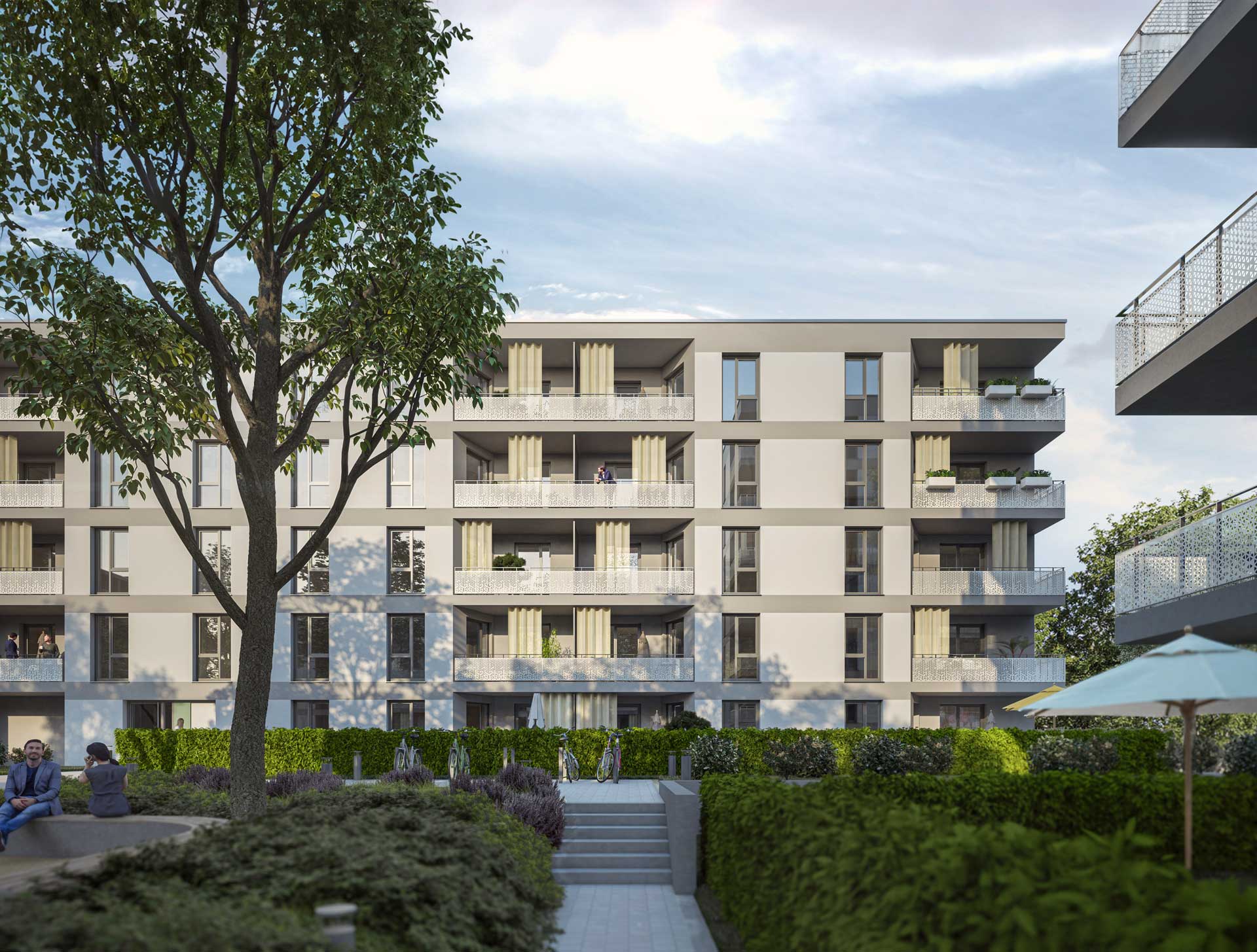 Die Bauabschnitte A-E sind bereits fertiggestellt und bezogen. Mit den Bauabschnitten F-J erwarten Sie weitere echte Hingucker. Als Ergebnis eines Architekturwettbewerbes machen die Gebäude optisch durch Ihre klare Linienführung und die moderne Architektur auf sich aufmerksam. Die Qualität des neuen Quartiers liegt in den ruhigen, urban und hochwertig gestalteten Innenhöfen. Diese schaffen attraktive Angebote zeitgemäßen Lebens für jede Altersgruppe – mitten im Quartier.