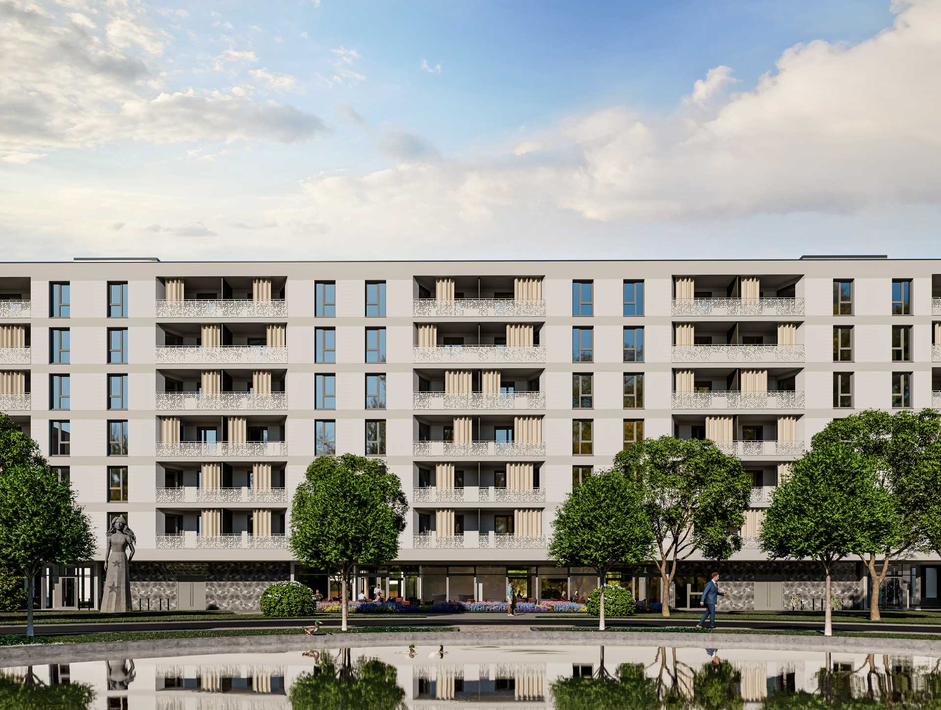 Mit dem EUROPAKARREE erwartet Sie ein echter Hingucker. Als Ergebnis eines Architekturwettbewerbes machen die Gebäude optisch durch Ihre klare Linienführung und die moderne Architektur auf sich aufmerksam. Die Qualität des neuen Quartiers liegt in den ruhigen, urban und hochwertig gestalteten Innenhöfen. Diese schaffen attraktive Angebote zeitgemäßen Lebens für jede Altersgruppe – mitten im Quartier.