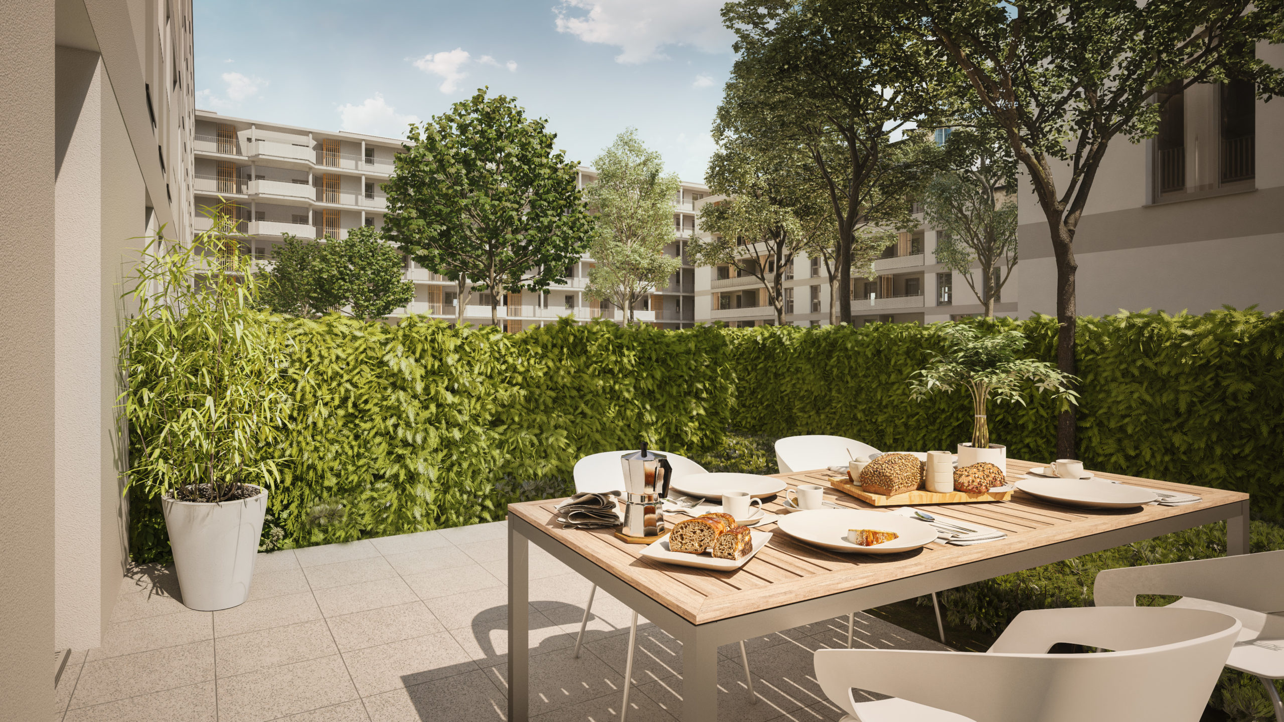 Das EUROPAKARREE steht für modernes Wohnen, ästhetisch klare Architektur und energieeffiziente Bauweise mit ökologischer Weitsicht. Das neu entstehende Quartier vereint hochwertige Wohnungen mit innovativen Smart-Home-Lösungen, die Komfort und Wertbeständigkeit sichern. Begrünte Freiräume schaffen Lebensqualität, während das Nachbarschaftszentrum mit Café als sozialer Mittelpunkt Begegnung fördert. Durch Service- und Unterstützungsangebote – besonders für ältere Bewohner – entsteht ein Wohnumfeld, das auf lange Sicht als Investment in Lebensqualität und Zukunftssicherheit überzeugt.