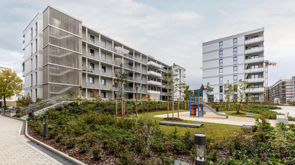 Die zentrale, aber ruhige Lage sorgt für eine ideale Anbindung an Innenstadt, Nahverkehr und Einkaufsmöglichkeiten. Begrünte Außenanlagen und großzügige Freiflächen schaffen zusätzliche Lebensqualität – so verbindet das Europakarree 2 urbanes Wohnen mit Wohlfühlatmosphäre und moderner Lebensart.